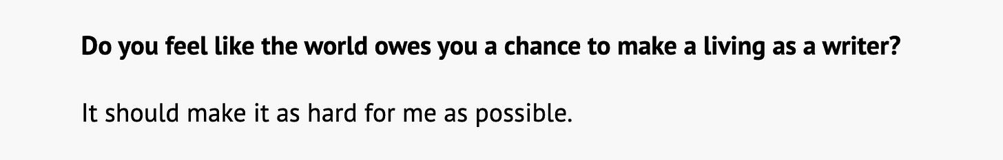 I find myself thinking (and laughing) a lot about an answer I semi-recently remembered I gave in March 2013 to Full Stop’s “questionnaire asking writers about the effect writing has had on their physical, emotional, and economic health; on the idea of poverty being a precondition for writing well; on what makes writing truthful to one’s self and to readers.”
